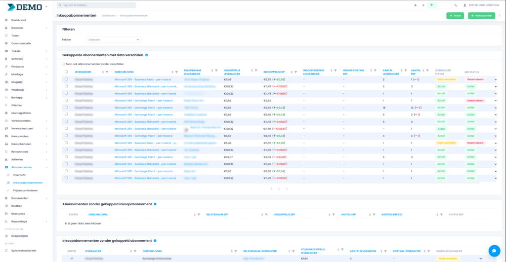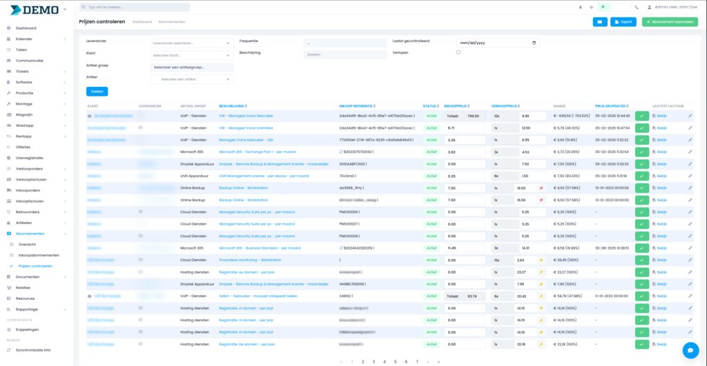 Toelichting afbeelding: Hierboven zie je het overzicht van alle abonnementen die worden ingekocht.